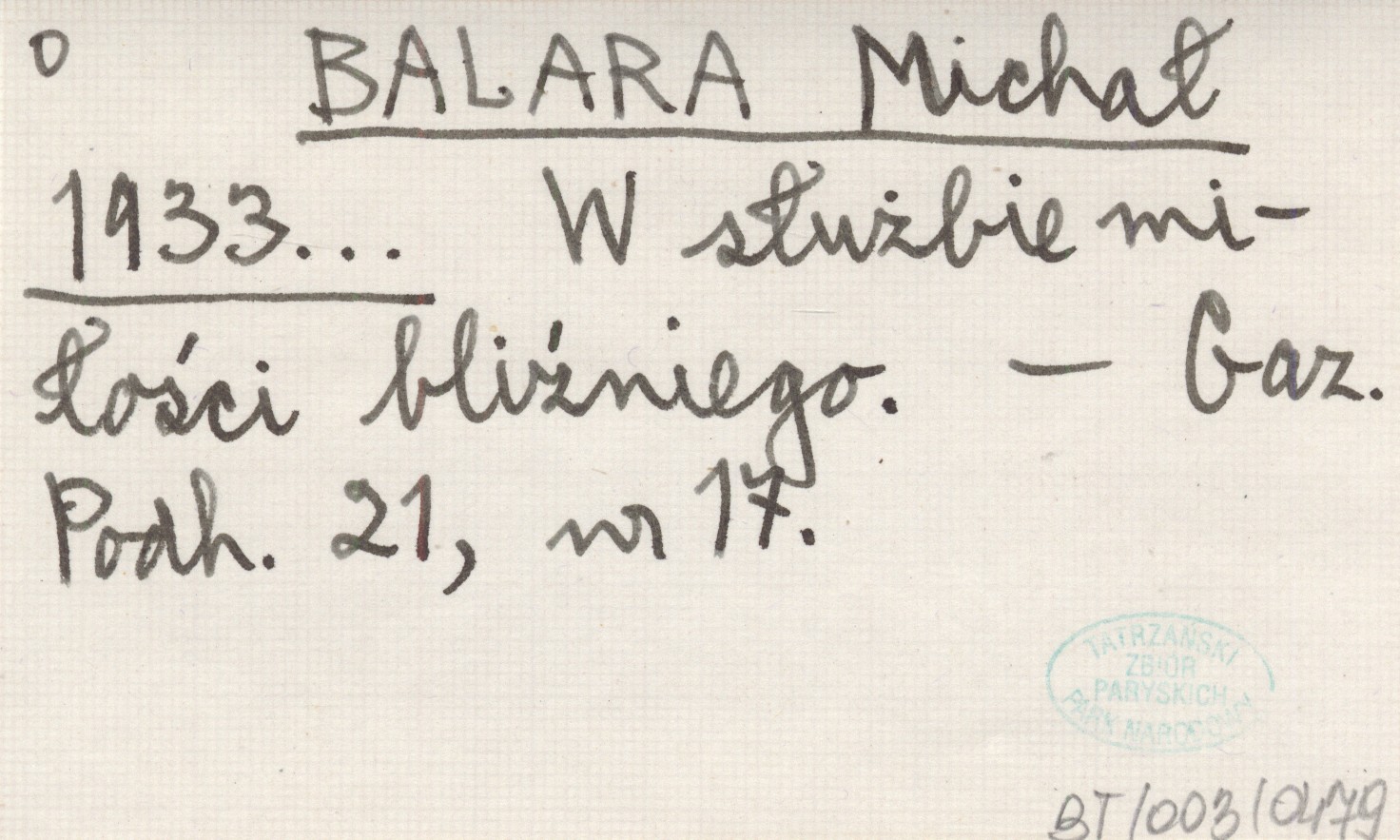 BALARA Michał 1933... W służbie miłości bliźniego.