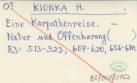 KIONKA H. Eine Karpathenreise.