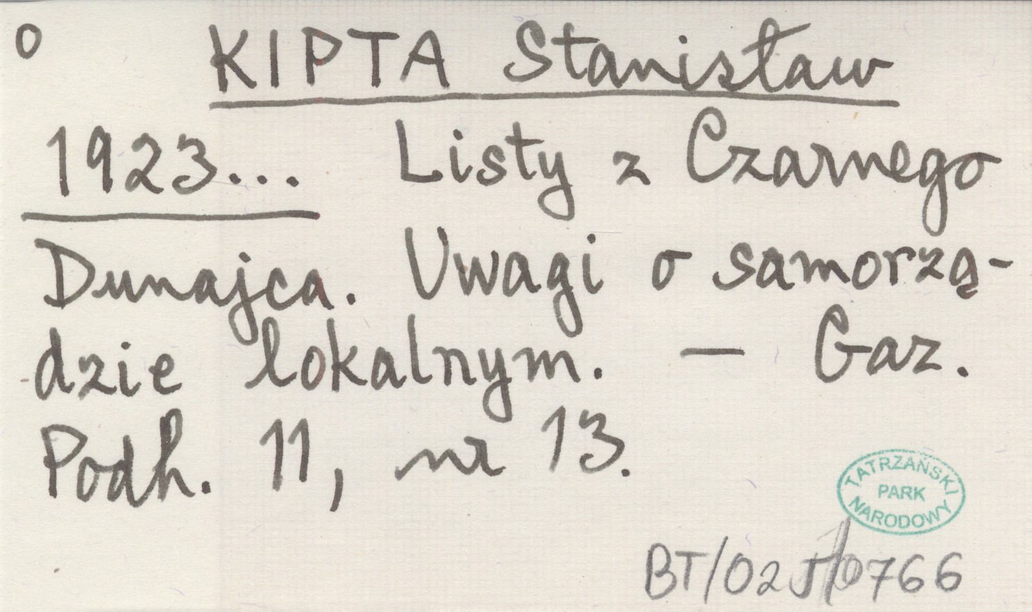 KIPTA Stanisław 1923... Listy z Czarnego Dunajca. Uwagi o samorządzie lokalnym.