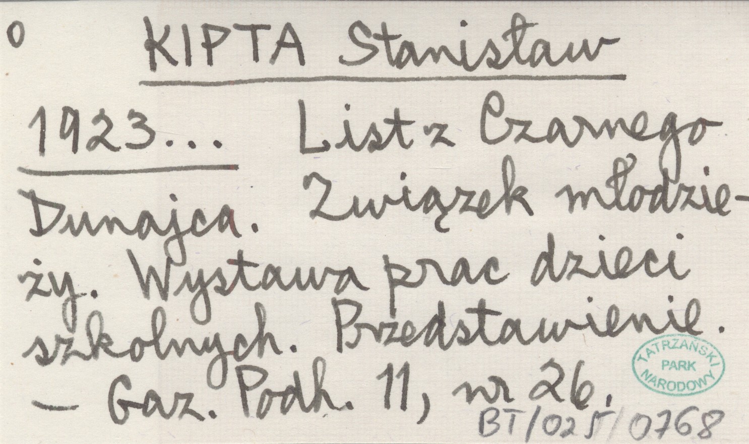 KIPTA Stanisław 1923... List z Czarnego Dunajca. Związek młodzieży. Wystawa prac dzieci szkolnych. Przedstawienie.