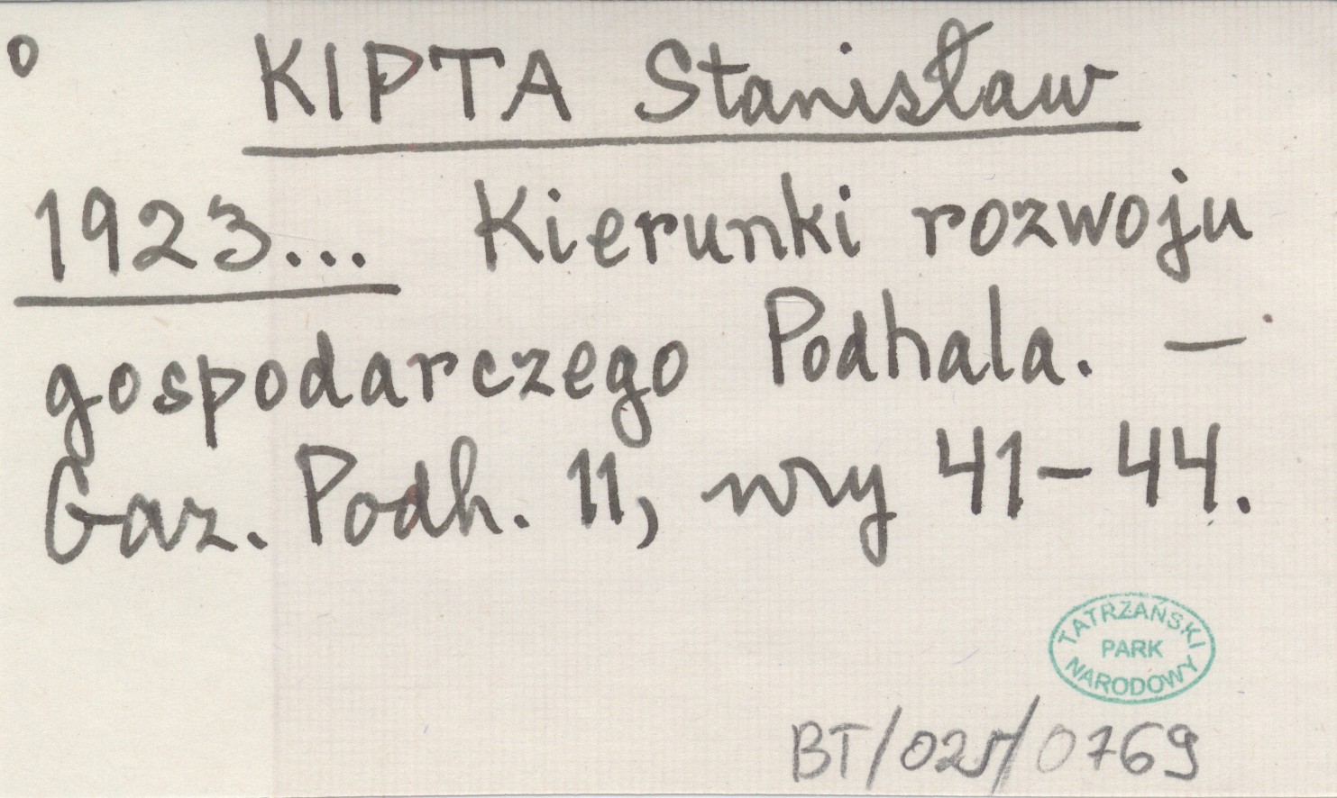 KIPTA Stanisław 1923... Kierunki rozwoju gospodarczego Podhala.