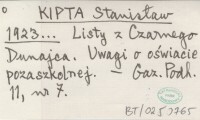 KIPTA Stanisław 1923... Listy z Czarnego Dunajca. Uwagi o oświacie pozaszkolnej.