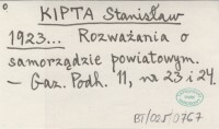 KIPTA Stanisław 1923... Rozważania o samorządzie powiatowym.