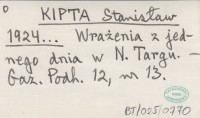 KIPTA Stanisław 1924... Wrażenia z jednego dnia w N. Targu.