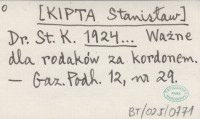 Dr. St. K. [KIPTA Stanisław] 1924... Ważne dla rodaków za kordonem.