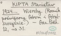 KIPTA Stanisław 1924... Wierchy. (Rocznik poświęcony Górom i Góralszczyźnie.).