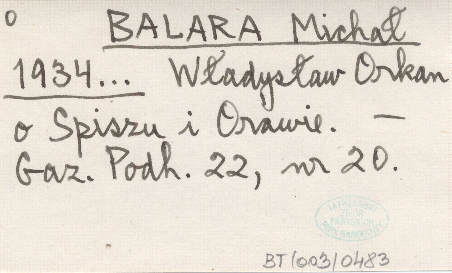 BALARA Michał 1934... władysław Orkan o Spiszu i Orawie.
