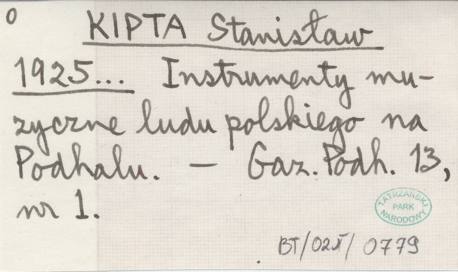 KIPTA Stanisław 1925... Instrumenty muzyczne ludu polskiego na Podhalu.