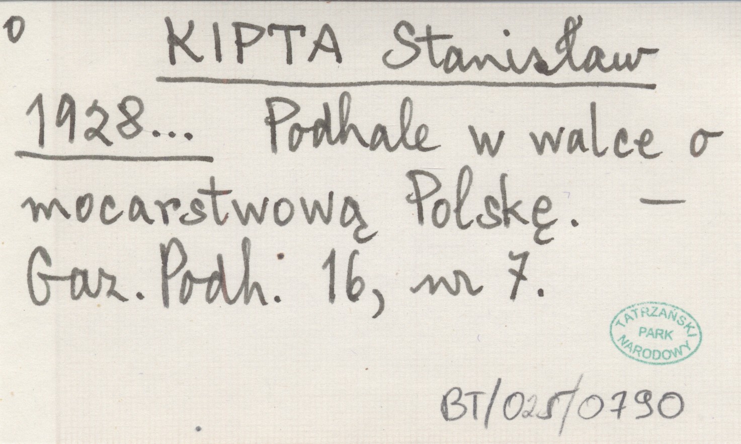 KIPTA Stanisław 1928... Podhale w walce o mocarstwową Polskę.