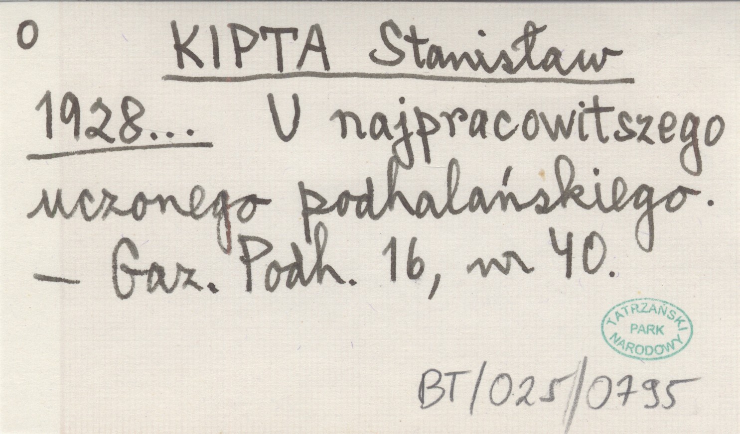KIPTA Stanisław 1928... U najpracowitszego uczonego podhalańskiego.