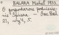 BALARA Michał 1933... O gospodarcze podniesienie Spisza.