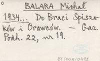BALARA Michał 1934... Do Braci Spiszaków i Orawców.