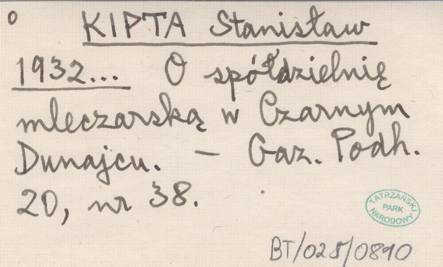 KIPTA Stanisław 1932... O spółdzielnię mleczarską w Czarnym Dunajcu.