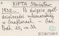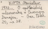 KIPTA Stanisław 1932... O spółdzielnię mleczarską w Czarnym Dunajcu.