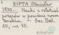 KIPTA Stanisław 1932... Nauki z ostatnich pożarów w powiecie nowotarskim.