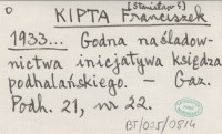 KIPTA Franciszek [Stanisław?] 1933... Godna naśladownictwa inicjatywa księdza podhalańskiego.