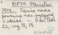 KIPTA Stanisław 1934... Ziemia nasza powinna nas wyżywić i odziać.