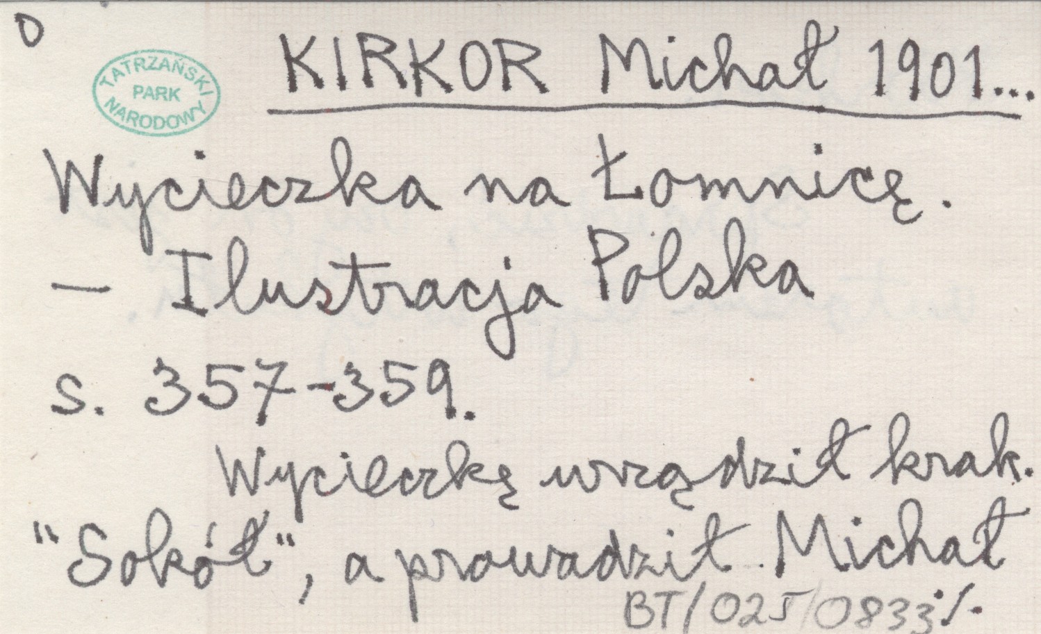 Ilustracja Polska, S. 357-359. Wycieczkę urządził krak. "Sokół", a prowadził Michał Kirkor. Sprawdzić, czy on jest autorem tego artykułu.