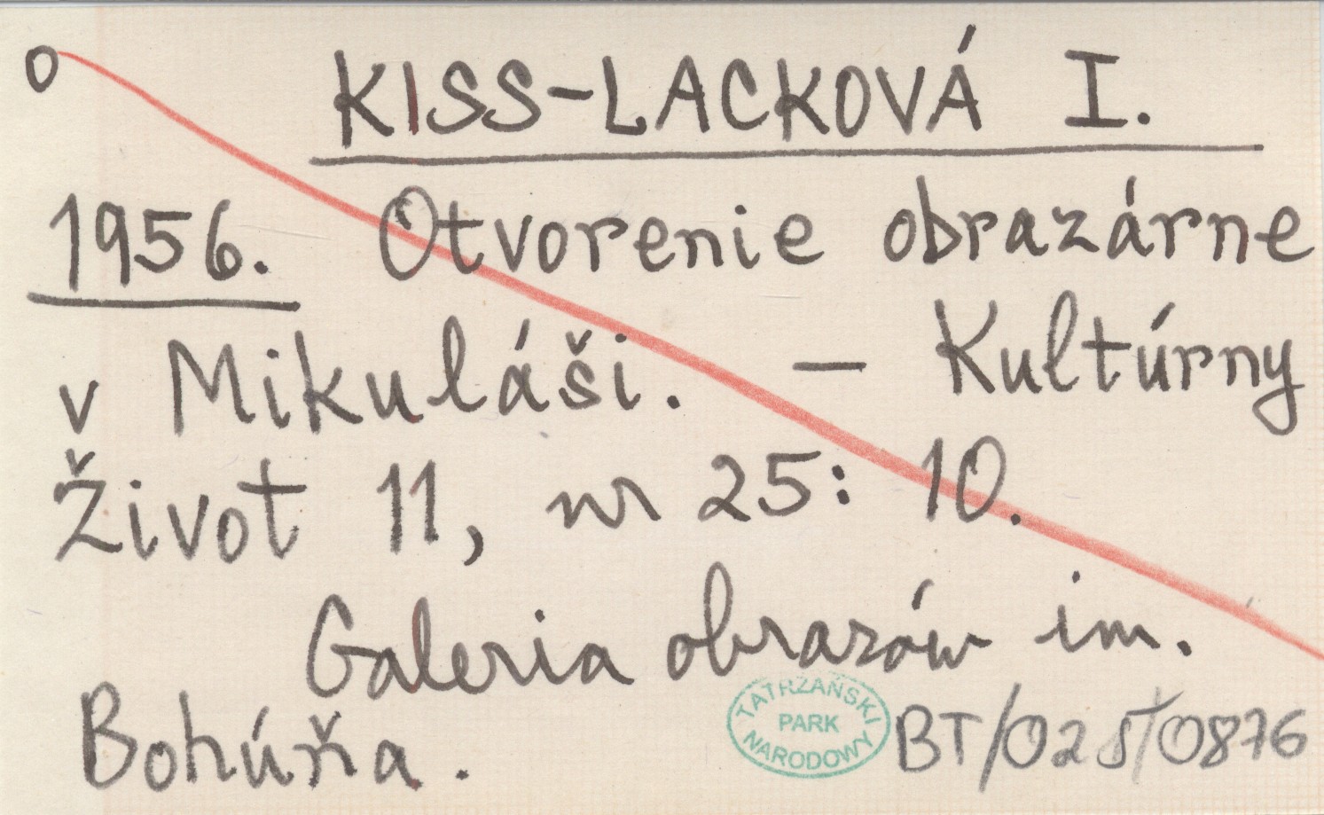 KISS-LACKOVÁ I. 1956 Otvorenie obrazárne v Mikuláši.