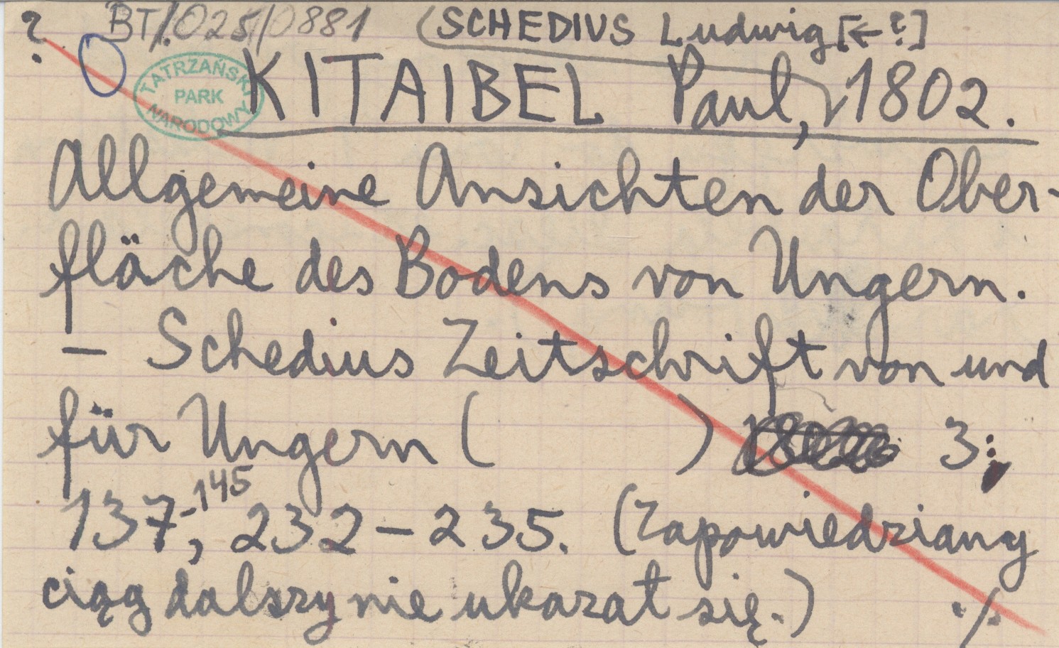 Schedius Zeitschrift von und für Ungern, 3: 137-145, 232-235. Jest to skrócony przekład ze wstępu do tomu 1 Wallsteina i Kitaibela "Desc. et icones plant. rar. Hung.). (Zapowiedziany ciąg dalszy nie ukazał się.)