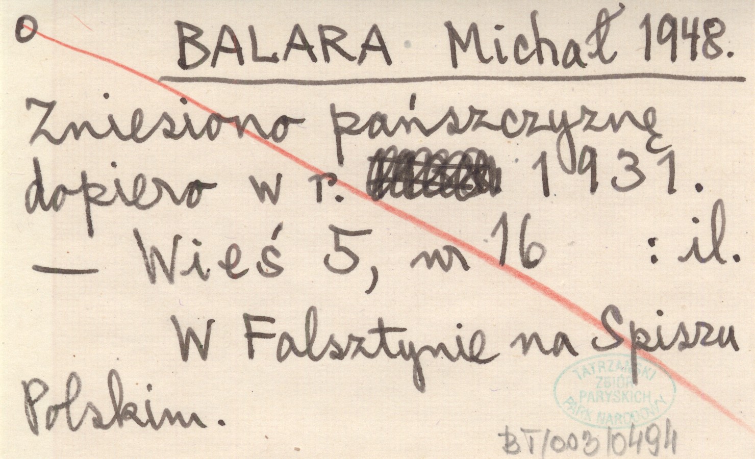 BALARA Michał 1948 Zniesiono pańszczyznę dopiero w r. 1931.