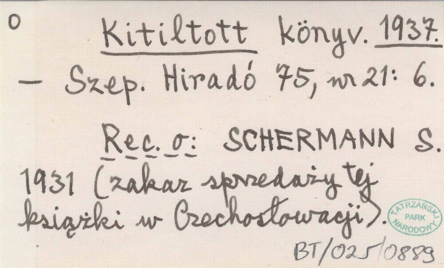 Szepesi Hiradó, 75, nr 21: 6. REC: SCHERMANN S. 1931 (zakaz sprzedaży tej książki w Czechosłowacji)