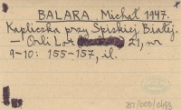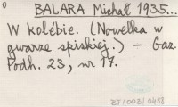 BALARA Michał 1935... W kolébie. (Nowelka w gwarze spiskiej).