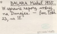 BALARA Michał 1935... W sprawie zapory wodnej na Dunajcu.