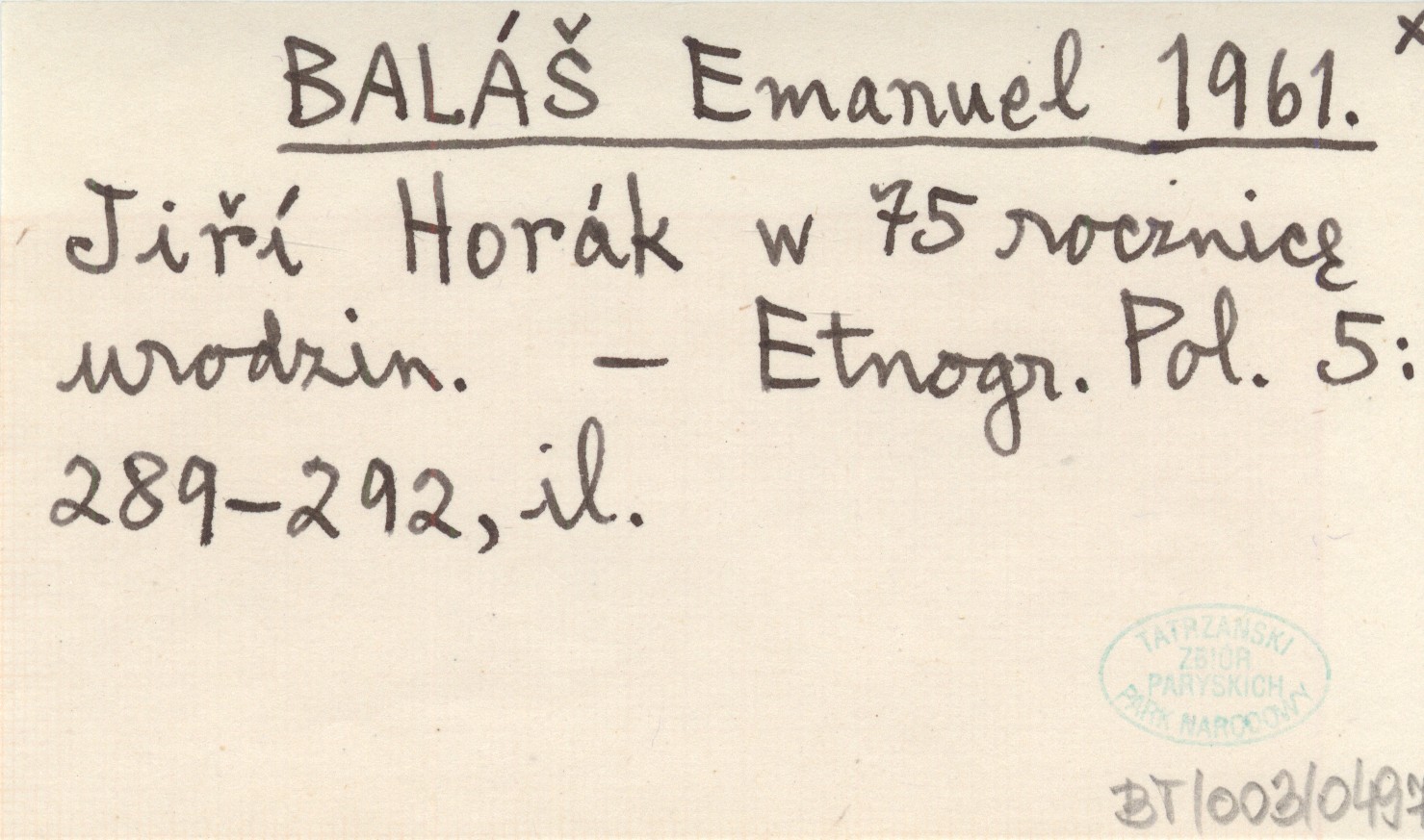 BALÁŠ Emanuel 1961 Jiří Horák w 75 rocznicę urodzin.