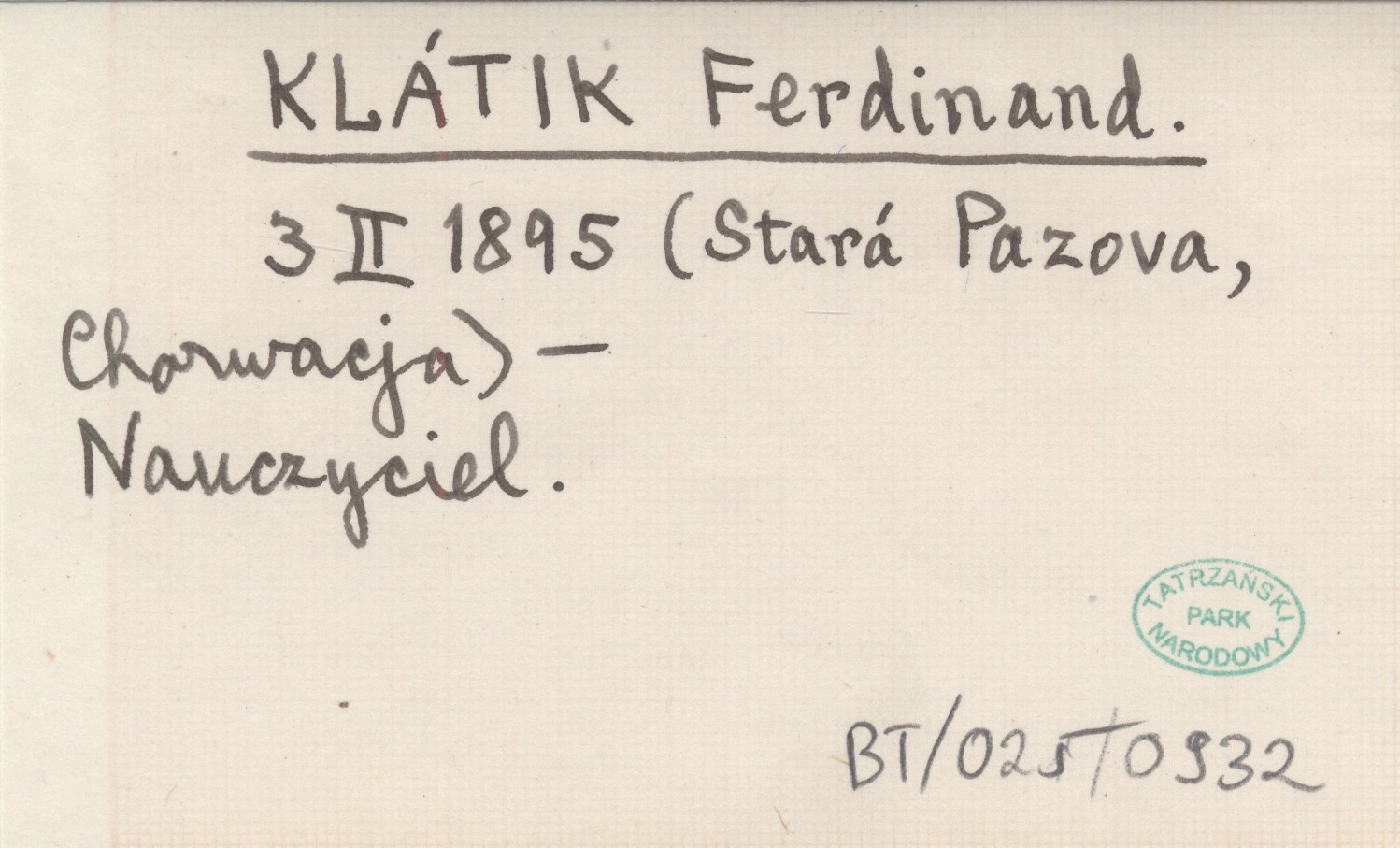3 II 1895 (Stará Pazova, Chorwacja)- Nauczyciel.