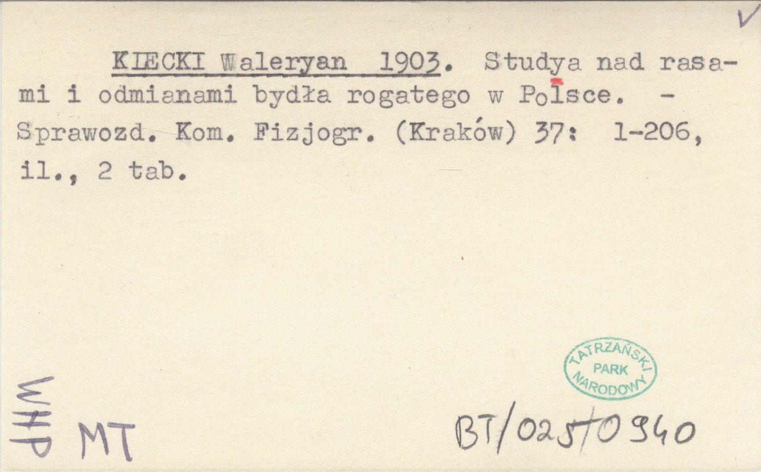 KLECKI Waleryan 1903 Studya nad rasami i odmianami bydła rogatego w Polsce.