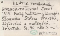 KLÁTIK Ferdinand GREGOR-TAJOVSKÝ, Jozef. ; 1919 Malý kultúrny zemepis Slovenska. Stolice: oravská, liptovská a zvolenská.