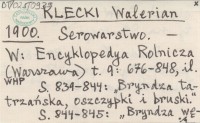 KLECKI Walerian 1900 Serowarstwo.