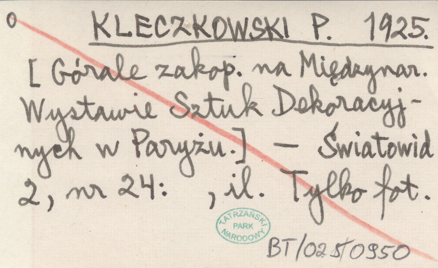 Projekt Digitalizacja fiszek z Bibliografią Tatr i Podtatrza Witolda Henryka Paryskiego jest finansowany ze środków Ministra Kultury i Dziedzictwa Narodowego oraz Tatrzańskiego Parku Narodowego.