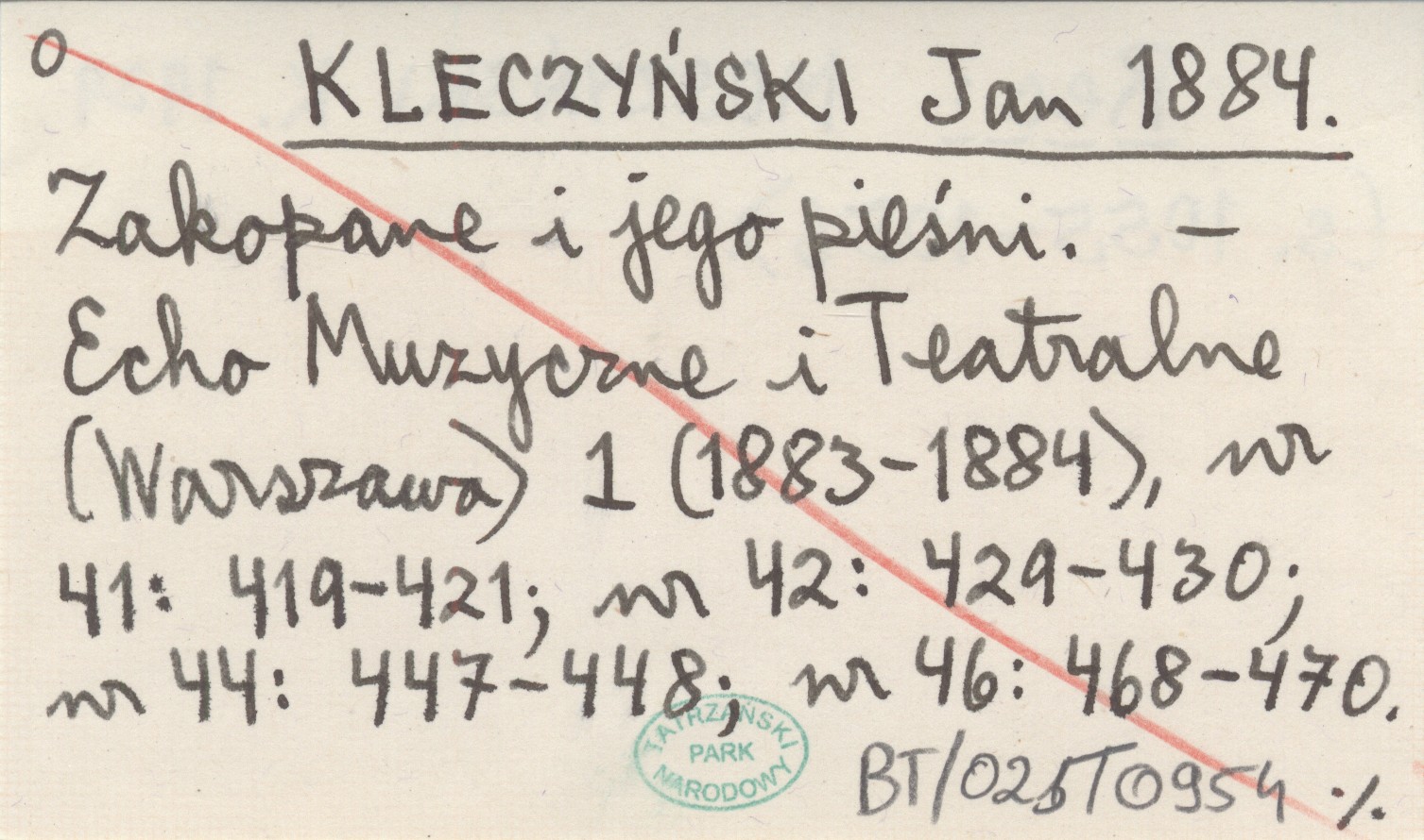Echo Muzyczne i Teatralne (Warszawa) , 1 (1883-1884), nr 41: 419-421; nr 42: 429-430; nr 44: 447-448; nr 46: 468-470. REC: MOSZYŃSKI K. 1939 (s. 1055-1056)