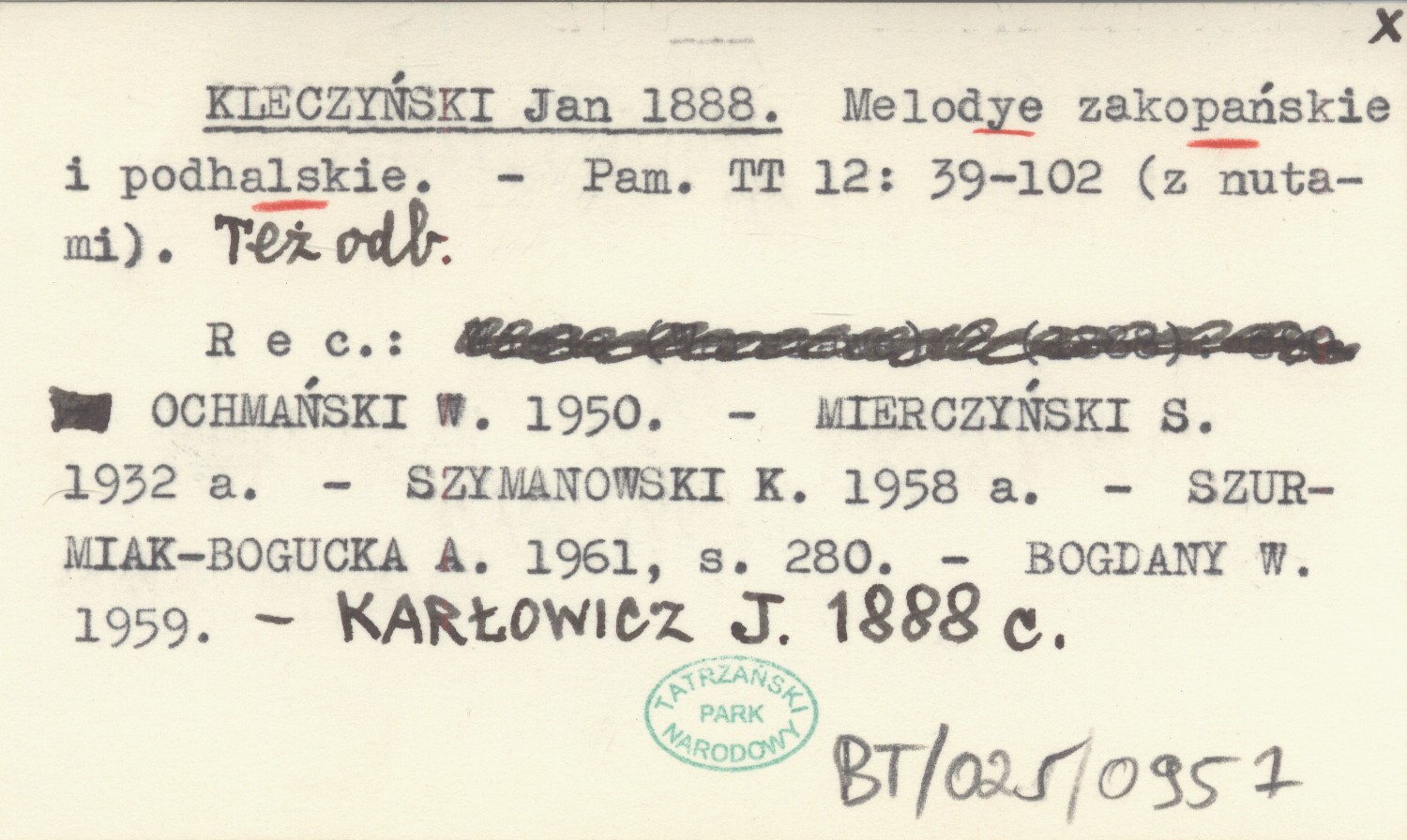 Pamiętnik Towarzystwa Tatrzańskiego, 12: 39-102 (z nutami). Też odb. REC: OCHMAŃSKI W. 1950 ; MIERCZYŃSKI S. 1932 a ; SZYMANOWSKI K. 1958 a ; SZURMIAK-BOGUCKA A. 1961, s. 280 ; BOGDANY W. 1959 ; KARŁOWICZ J. 1888 c ;