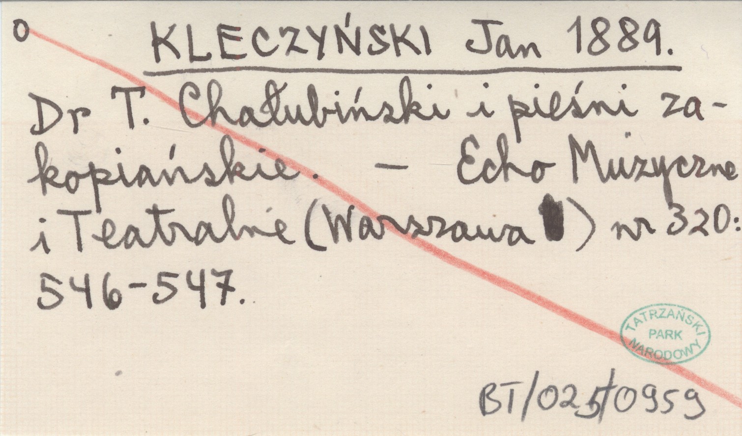 KLECZYŃSKI Jan 1889 Dr T. Chałubiński i pieśni zakopiańskie.