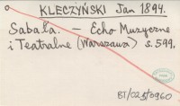 KLECZYŃSKI Jan 1894 Sabała.