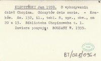 KLECZYŃSKI Jan 1959 O wykonywaniu dzieł Chopina. Odczytów dwie serie.