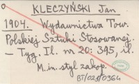 KLECZYŃSKI Jan 1904 Wydawnictwa Tow. Polskiej Sztuki Stosowanej.