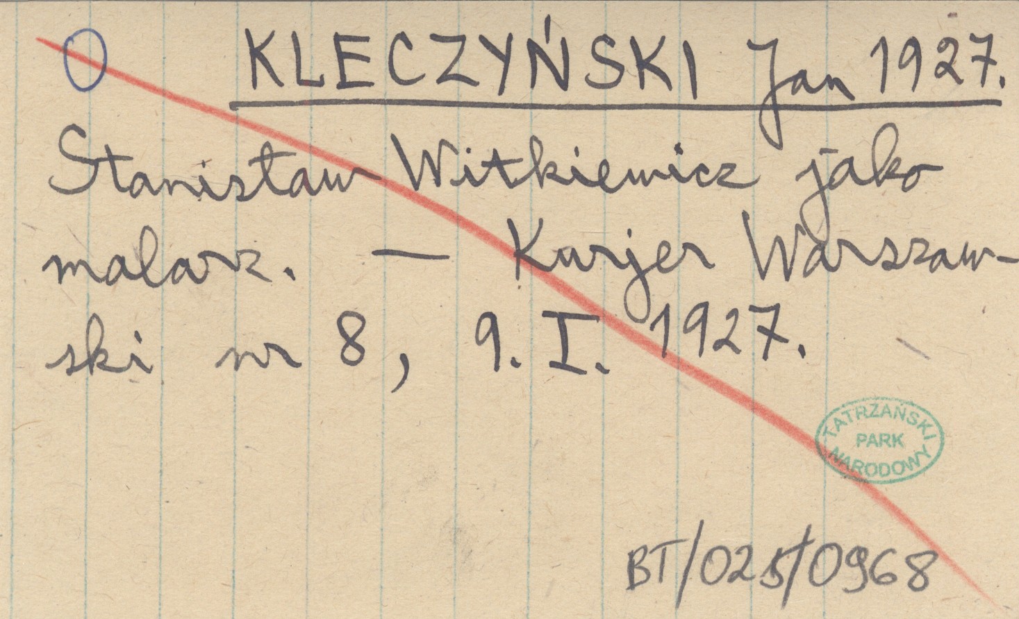 KLECZYŃSKI Jan 1927 Stanisław Witkiewicz jako malarz.