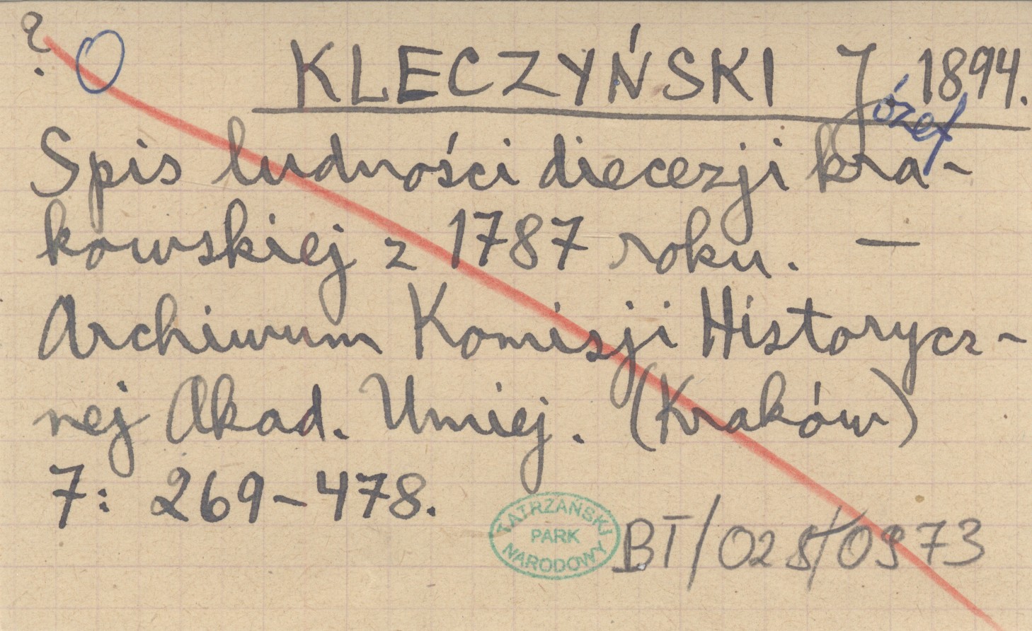 KLECZYŃSKI Józef 1894 Spis ludności diecezji krakowskiej z 1787 roku.