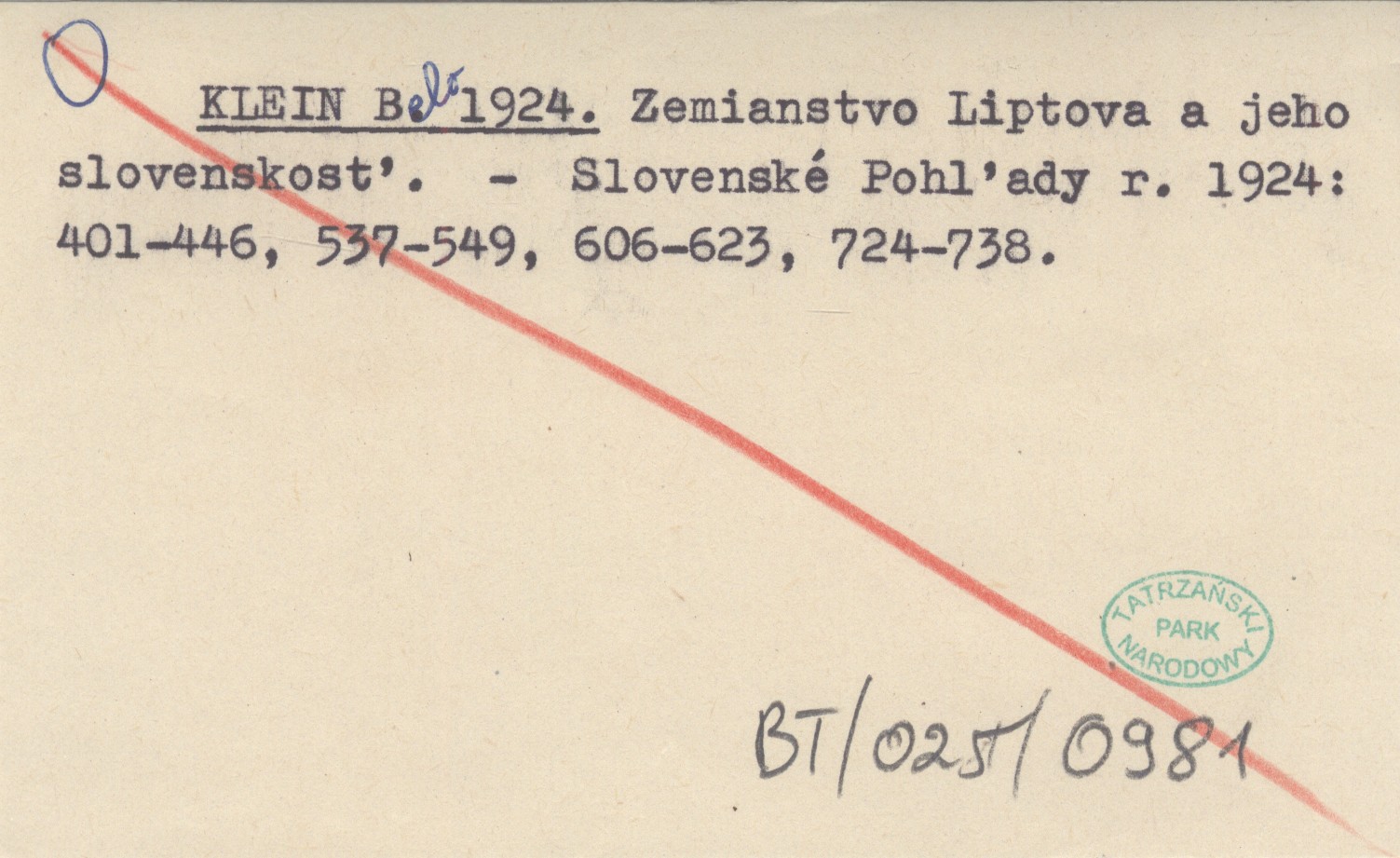 KLEIN Belo 1924 Zemianstvo Liptova a jeho slovenskosť.