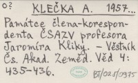 KLEÈKA A. 1957... Památce èlena-korespondenta ÈSAZV profesora Jaromíra Kliky.