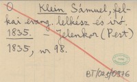 Klein Sámuel, felkai evang. lelkész és iró. 1835
