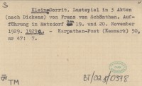 Klein-Dorrit. Lustspiel in 3 Akten (nach Dickens) von Franz von Schönthan. Aufführung in Matzdorf am 19. und 20. November 1929. 1929 a