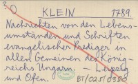 KLEIN 1789 Nachrichten von den Lebensumständen und Schriften evangelischer Prediger in allen Gemeinen des Königreichs Ungarn.