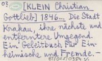[KLEIN Christian Gottlieb] 1846... Die Stadt Krakau, ihre nächste und entferntere Umgegend. Ein Geleitbuch für Einheimische und Fremde.