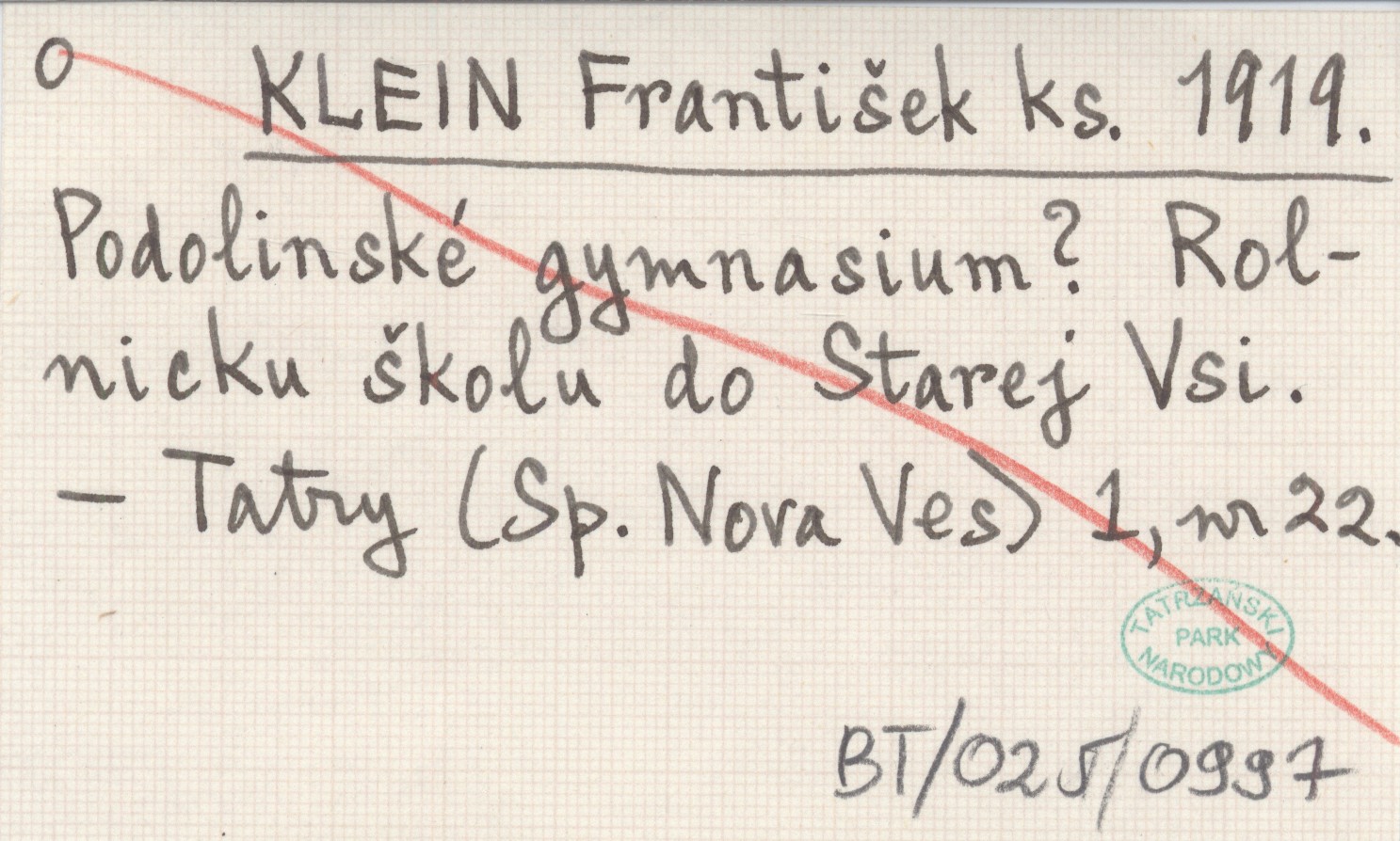 KLEIN František ks. 1919 Podolinské gymnasium? Rolnicku školu do Starej Vsi.