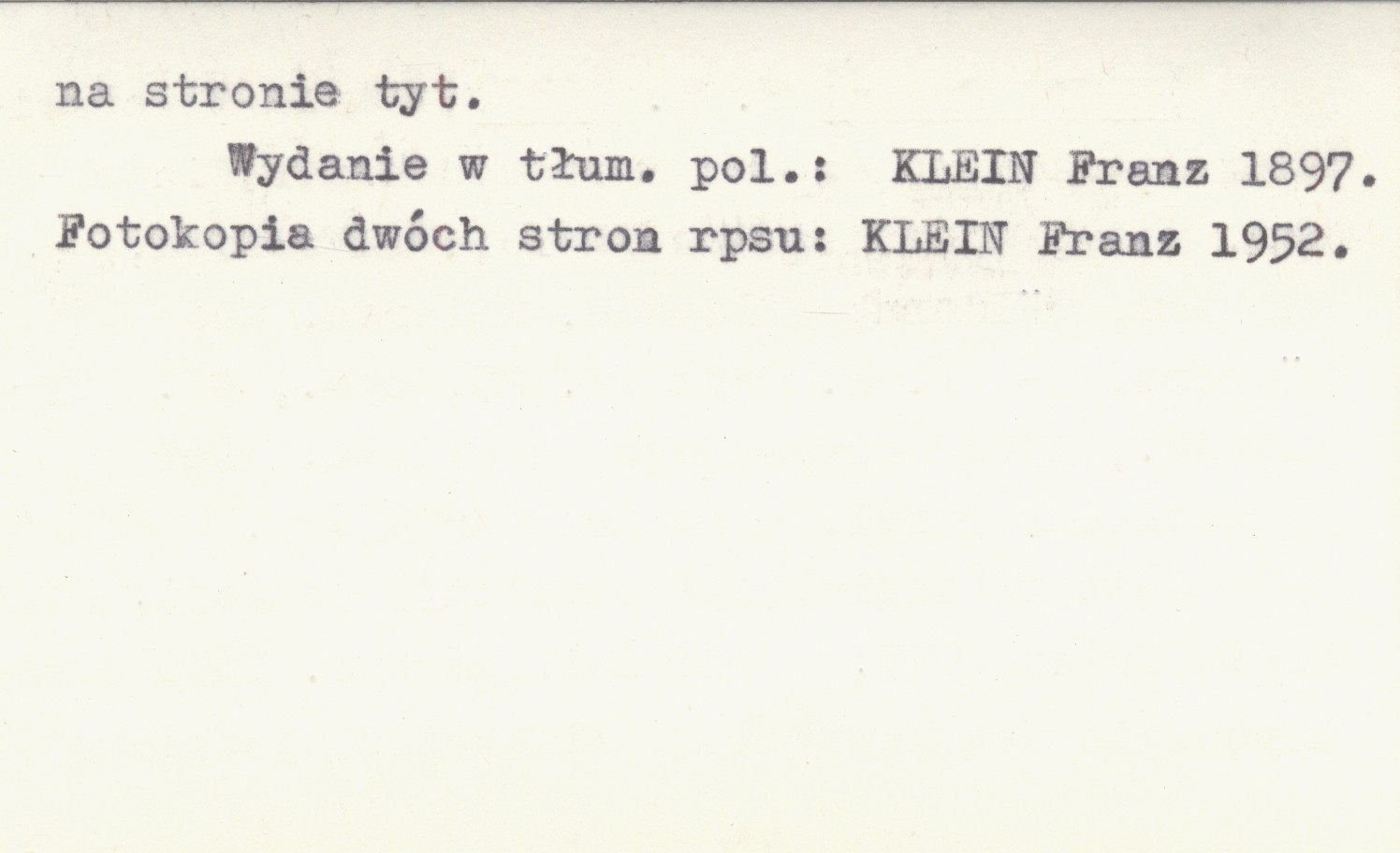 , 27 s., opr., 4°. Tytuł jw.; tytuł pierwszego rozdziału: Der Karpatische Gural. B. m. Rps nr 5320. Jest to odpis (niekompletny) pozycji: KLEIN Franz 1827; sporządził go w r. 1836 własnoręcznie Jan Kanty Andrusikiewicz, podpisany na stronie tyt. Wydanie w tłum. pol.: KLEIN Franz 1897. Fotokopia dwóch stron rpsu: KLEIN Franz 1952.